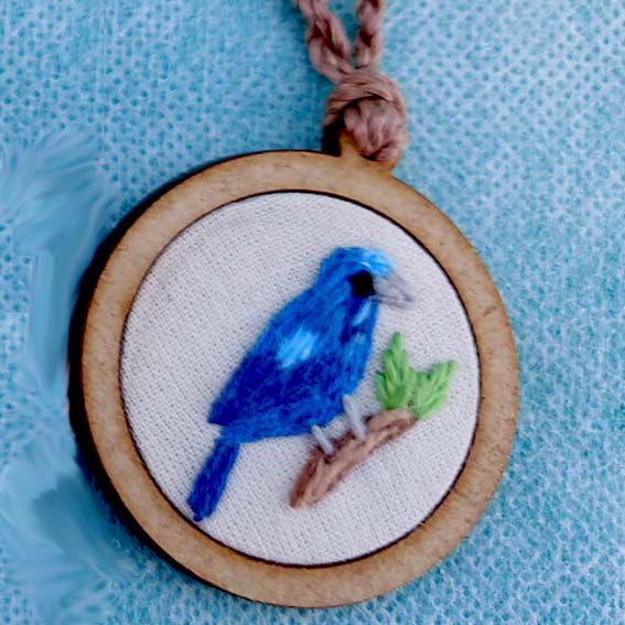 Agregue alegria e beleza em sua vida com este lindo pingente bordado do azulão, ou presenteie alguém especial.