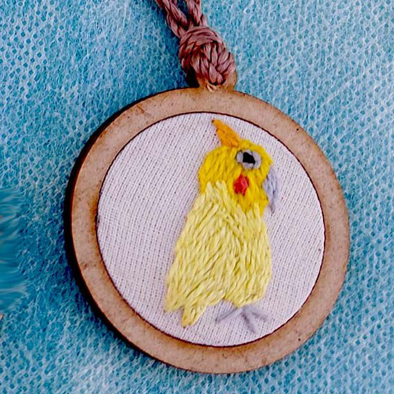 Agregue alegria e beleza em sua vida com este lindo pingente bordado da calopsita, ou presenteie alguém especial.